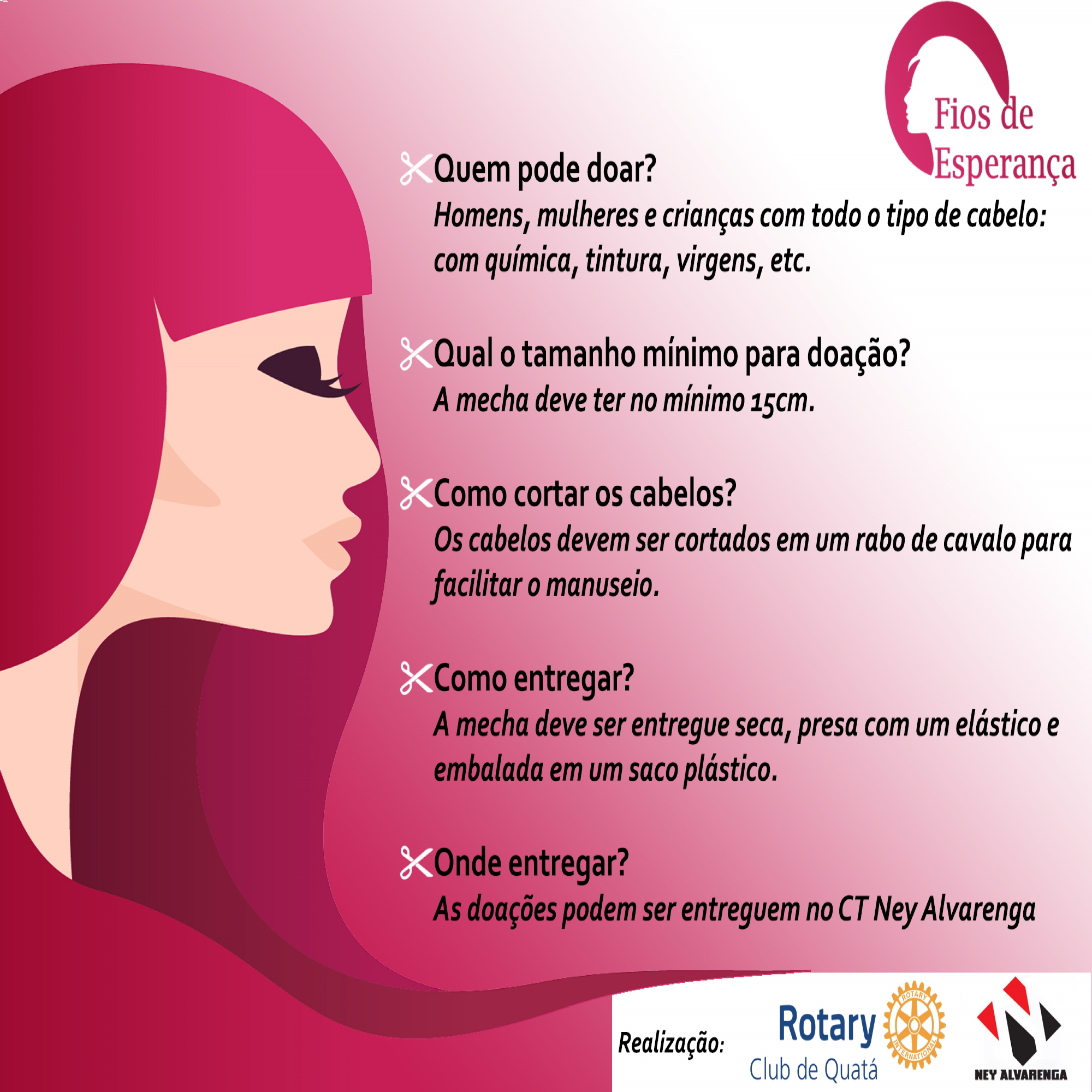 O Rotary Club de Quatá e o Centro de Treinamento Ney Alvarenga estão realizando em conjunto o projeto Fios de Esperança que visa a arrecadação de mechas de cabelos para confecção de perucas para o Hospital Amaral Carvalho de Jaú.